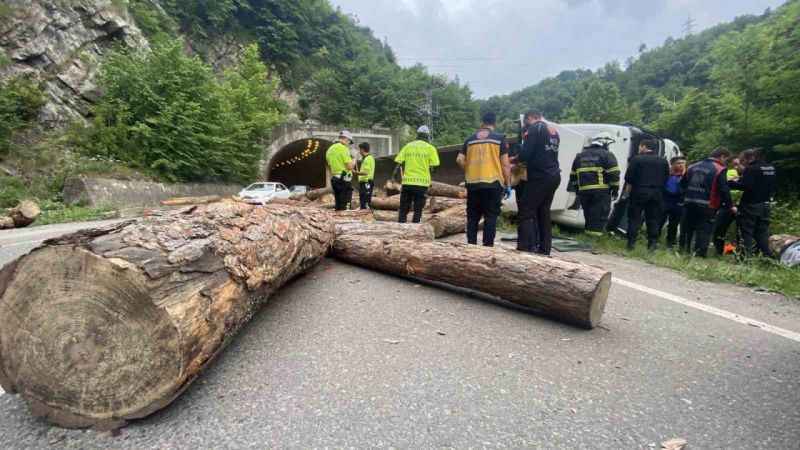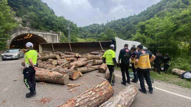 Olay, akşam saatlerinde Zonguldak-Ankara kara yolunda meydana geldi. İddiaya göre, Ahmet Bal (54) idaresindeki 54 AHS 871 plakalı tır kontrolden çıkarak yol kenarına çarptı. Çarpmanın etkisiyle dorsede bulunan odunlar yola savrulurken, tır 100 metre sürüklenerek devrildi. Çevredekilerin haber vermesi üzerine olay yerine sağlık, polis ve itfaiye ekipleri sevk edildi. Olay yerine gelen sağlık ekipleri tır sürücüsüne ilk müdahaleyi yaparak ambulansla Atatürk Devlet Hastanesine götürdü. Polis kazayla ilgili soruşturma başlatırken, kara yolları ekipleri tarafından yolda temizleme çalışması başlatıldı.