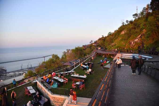 Seyir Terası’nda yer alan kafe alanının bahçesinde akşam saatlerinde toplanan ziyaretçiler Trabzon’un gece manzarasıyla birlikte bir yandan içeceklerini yudumlarken, bir yandan da koyu sohbetin tadını çıkarıyor. Tüm yüzeylerin ahşap, bir terasın cam, bir terasın ise ahşap olarak tasarlandığı, Kızlar Manastırı’ndan başlayan ve doğu yönüne doğru uzanan yaklaşık 1100 metre uzunluğundaki Seyir Terası ve Gezinti Yolu 1 hafta önce hizmete açılmasına rağmen şehrin en çok rağbet gören yerlerinden biri oldu.