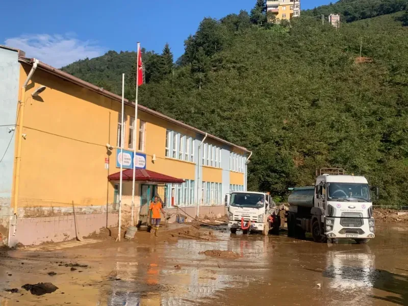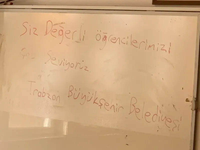 Trabzon Büyükşehir Belediye ekiplerinin, selin ardından bir sınıf tahtasına bıraktığı not gönüllere dokundu.