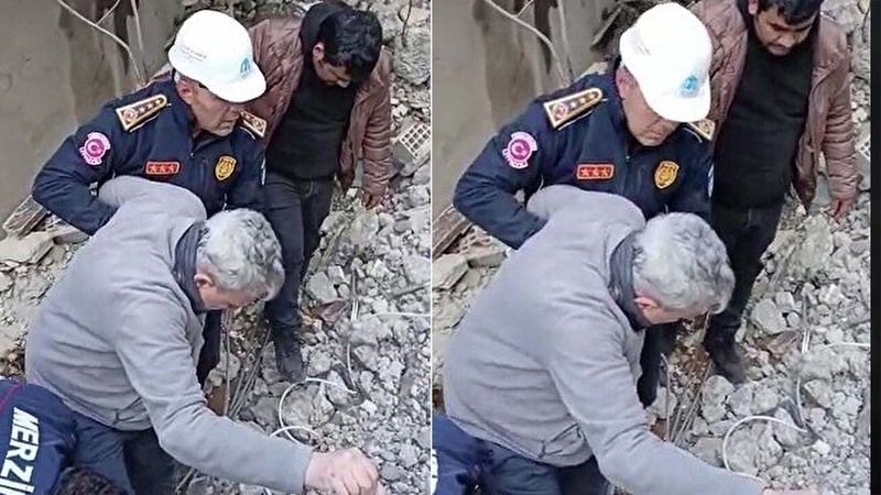 Amasya’nın Merzifon ilçesinden depremin vurduğu Kahramanmaraş’a yardıma giden itfaiye eri enkaz altından çıkararak kurtardıkları yaşlı adama kendi botlarını giydirdi. O sırada bir itfaiye eri, yalın ayak olduğunu gördüğü yaşlı adama kendi botlarını çıkararak giydirdi. Botları giyerken şaşırıp “Sen ne yapacaksın?” diye soran yaşlı adama yanıt veren itfaiye eri “Sen bizi düşünme. Biz giyeriz bir şey” şeklinde cevap verdi. Sağlık durumunun iyi olduğu görülen yaşlı adam kontrol amacıyla acil sağlık ekiplerine teslim edildi.