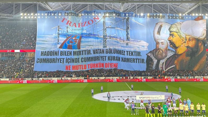 Medical Park Stadı'nda açılan pankartta Trabzon'u fetheden Fatih Sultan Mehmet, onu yöneten Yavuz Sultan Selim ve Trabzon doğumlu Kanuni Sultan Süleyman yer aldı. Afişte, "Fatih tarafından fethedilen, Yavuz'un yönettiği ve Kanuni'nin doğduğu şehirdir. Yerini bilen cesurdur. Vatan bölünmez ve benzersizdir. Cumhuriyet içinde bir Cumhuriyet kuran namert'tir. Ben ne mutlu bir Türküm" denildi.