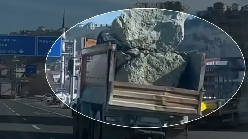 Trabzon Sürmene’de önlemsiz yük taşıyan kamyon, vatandaşların tepkisini çekti! "İlla kaza mı olması lazım?" dedirten görüntüler sosyal medyada gündem oldu.
