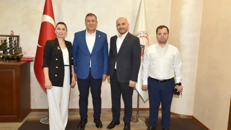 Türkiye Finans Katılım Bankası Trabzon Ticari Şube Müdürü Şükrü Şimşek ve Portföy Yöneticisi Eren Akbulut, Trabzon Ticaret ve Sanayi Odasını ziyaret ederek Başkan Erkut Çelebi ile görüştü, iş dünyasına destekler konusunda istişarede bulunuldu.