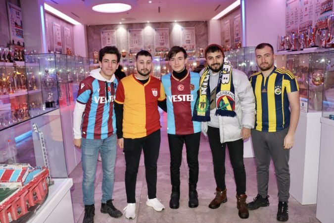 UEFA Konferans Ligi play-off turunda Basel ile karşılaşacak Trabzonspor'a destek veren Fenerbahçe, Galatasaray ve Beşiktaş taraftarları maç öncesinde Trabzonspor Şamil Ekinci Müzesi'ni ziyaret etti." Asrın felaketi" olarak nitelenen Kahramanmaraş merkezli depremlerden etkilenen bölgelere destek için maç öncesinde bir araya gelen taraftarlar, birlik ve beraberlik mesajı verdi.Maçı izlemek üzere İzmir'den gelen ve müzeyi ziyaret eden Fenerbahçe taraftarı Osman Tayyar Yurttaş, AA muhabirine, depremin çok büyük bir felaket olduğunu, yaşananlardan çok üzüldüğünü söyledi. Bundan sonra birlik beraberlik içerisinde olunması gerektiğini vurgulayan Yurttaş, "Kendimi çok garip hissediyorum. Normal zamanda asla gelmeyi düşünmeyeceğim ya da Fenerbahçe atkısıyla geçmeyi düşünmeyeceğim yerlerde birlik içerisinde olmaktan çok mutluyum. Burada Beşiktaşlı, Galatasaraylı, Trabzonsporlu kardeşlerimle karşılaşmaktan çok mutluyum. Kötü bir günde böyle kardeşçe olmak beni mutlu etti açıkçası." diye konuştu.Fenerbahçe taraftarı Buse Şevval Aslanlar da deprem bölgesindeki insanlar için çok üzüldüğünü dile getirerek, "Umarım onlar da en kısa zamanda daha iyi şartlara kavuşurlar. Bu düşmanlık bence çok saçma, hepimiz birlik içerisinde gidiyoruz." dedi.Gümüşhane'den gelen Fenerbahçe taraftarı Gökhan Yöndemir ise Trabzonspor Kulübünden yapılan birlik çağrısından sonra yerinde duramadığını çok büyük heyecanla maçı izlemeye geldiğini ifade etti.Depremzedelere destek verebilmek adına buraya geldiğinin altını çizen Yöndemir, şunları kaydetti:"Çok mutluyum, gururluyum, burada bizi çok güzel karşıladılar, bize çok sıcak davrandılar. Zaten bugün de birlik beraberlik içerisinde olamazsak ne zaman olacağız? Ülkemiz de bu günleri atlatacaktır. Çok daha güçlü ayağa kalkacağız. Burada olmaktan hem mutluyum, ayrıca gururluyum." İstanbul takımlarının taraftarlarıyla müzeyi gezen Trabzonsporlu Mehmet Emin, her zaman kardeşçe maçlara gitmek istediklerine işaret ederek, "Ülkemizin yaşadığı zor günden dolayı gün birlik günüydü, hep birlikte diğer takım taraftarı kardeşlerimizle bu maçı izleyeceğiz. Bundan sonraki süreçte de hep birlikte kardeşliğimiz devam eder. Birliğimiz beraberliğimiz devam eder, her yerde birbirimize dostça davranmalıyız." diye konuştu.