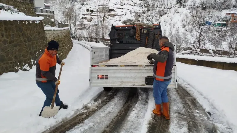 Trabzon Büyükşehir Belediyesi, yalnızca yolları açmakla kalmıyor, aynı zamanda şehir merkezlerinde vatandaşların günlük hayatını kolaylaştırmak için kar temizliği ve tuzlama çalışmaları gerçekleştiriyor.Çevre Koruma ve Kontrol Dairesi Başkanlığı ile Park ve Bahçeler Dairesi Başkanlığı ekipleri; hastane, ibadethane, duraklar, kaldırımlar ve yoğun kullanılan alanlarda kar birikintilerini temizleyerek buzlanmaya karşı önlem alıyor.