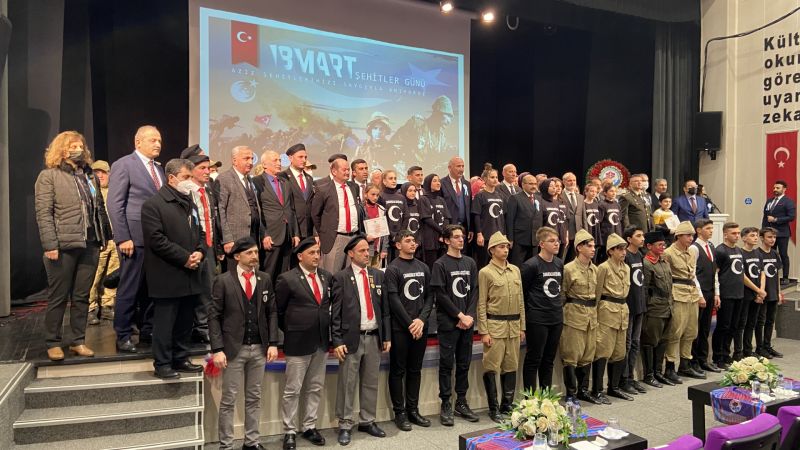 Trabzon’da Çanakkale Zaferi’nin 107. Yıldönümü dolayısıyla 18 Mart Şehitler Günü anma etkinliği düzenlendi. 15 Temmuz Şehitleri ve Hürriyet Parkı’nda çelenk sunma töreninden sonra programa Sülüklü Şehit Mezarlığı ziyaretiyle devam etti. Ardından Hamamizade İhsanbey Kültür Merkezi’nde günün anlam ve önemine dair konuşmalar yapıldı.Programa Trabzon Valisi İsmail Ustaoğlu, Trabzon İl Emniyet Müdürü Kenan Aydoğan, İl Jandarma Komutanı Alb. Adem Şen, Şehit Gazi dernekleri ile yakınları, öğrenciler ve vatandaşlar katıldı.Saz ekibi ve Huzurevi Sakinleri Korosu sahnede Çanakkale Türküsü’nü seslendirdi. Büyük beğeni toplayan koronun ardından Kanuni Anadolu İmam Hatip Lisesi öğrencileri gösteri yaptı. Gösteri izleyenleri duygulandırdı.RUSYA-UKRAYNA SAVAŞI EN ÖNEMLİ GÖSTERGESİUkrayna-Rusya savaşına dikkat çekerek birlik ve beraberliğin önemini anlatan Trabzon Emniyet Müdürü Kenan Aydoğan, “Bugün programın yapılmasında emeği geçen insanların akıllarına ve emeklerine sağlık. Öğrencilerden Huzurevi sakinlerine kadar herkes asker üniformasıyla vatan, millet aşkıyla sahnede yerini almış, kendisine düşen görevi yerine getirmiş. Tüm vatan topraklarında Mustafa Kemal Atatürk’ümüzün dediği gibi ‘Hattı savunma yoktur, sathı savunma vardır’ anlayışla ülkemizi her an korumaya, kollamaya, ülkemiz için ter, kan dökmeye, can vermeye devam edeceğiz. Bundan hiç kimsenin şüphesi olmasın.Milli olmanın, bir ve beraber olmanın en önemli göstergelerinden birisi son dönemlerde Ukrayna-Rusya savaşı.. Orada da birçok insan ülkesini savunmak için elinden geleni yapıyor. Bu deneyimlerimizi zaten asker, savaşan ve milli duruşlu millet olarak dünya insanlık tarihine kanıtladık. Şehitlerimizin manevi huzurlarında saygıyla eğiliyorum. Gazilerimize sağlıklı ömürler diliyorum. Allah ülkemizi, milletimizi korusun.” dedi.“BUGÜNÜN ANLAM VE RUHUNA UYGUN AÇILIŞ”Trabzon Valisi İsmail Ustaoğlu, “Türk milleti adına özel ve anlamlı bir gün. Çanakkale Zaferi’nin 107. Yıldönümü bugün. Trabzonlu hemşehrilerimizle kutladık. Kanuni Anadolu İmam Hatip Lisesi öğrencilerimiz çok güzel, adeta duygu dolu o günleri, yılları bize anlatan, yaşatan gösteri yaptılar. Emeği geçen her bir arkadaşa teşekkür ediyorum. Başta Gazi Mustafa Kemal Atatürk olmak üzere tüm şehitlerimize Allah’tan rahmet diliyorum.Ülkemiz açısından gurur verici vizyon projesi olan Çanakkale Köprüsü’nün de bugün açılışı yapılıyor. Tüm devlet erkanı bugün orada. Bugünün anlamına ve ruhuna uygun Asya ile Avrupa yakasını bir araya getirecek Çanakkale’de önemli bir proje hayata geçiyor. Başta Cumhurbaşkanımız olmak üzere vizyon projede emeği geçen herkese şükranlarımızı sunuyoruz.” ifadelerine yer verdi.