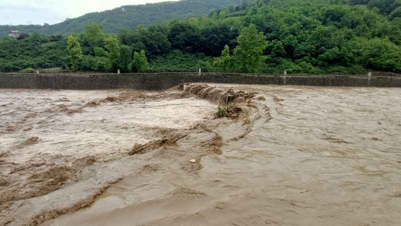 Trabzon'da dün akşam saatlerinden itibaren etkili olan sağanak hayatı olumsuz etkiledi. Akçaabat ilçesinin Çiçeklidüz Mahallesi'ndeki derenin debisi de yağış nedeniyle yükseldi.