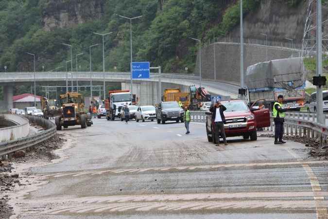 "Gümüşhane-Trabzon kara yolunun Çatak mevkisinde yoğun yağmurlardan kaynaklanan teressübatın ana yola akması sonucu gerekli tedbirleri alınmış, trafik akışı kontrollü şekilde sağlanmaktadır. Karayolları ekiplerimiz tarafından gerekli çalışma yapılmaktadır."