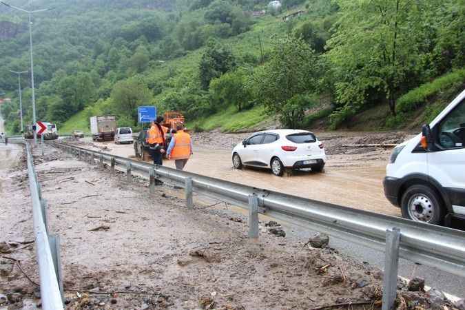 Trabzon'da dün akşam saatlerinden itibaren etkili olan sağanak hayatı olumsuz etkiledi. Akçaabat ilçesinin Çiçeklidüz Mahallesi'ndeki derenin debisi de yağış nedeniyle yükseldi.Trabzon'da dün akşam saatlerinden itibaren etkili olan sağanak hayatı olumsuz etkiledi. İl genelinde etkili olan sağanak nedeniyle bazı ilçelerde cadde ve sokaklar suyla doldu. Vakfıkebir'de Fol ve Yalı Mahallesi dereleri, Çarşıbaşı Deresi, Yomra Şana Deresi, Beşikdüzü Ağasar Deresi ile Tonya'daki bazı derelerin de yağış sebebiyle debileri yükseldi. Trabzon- Gümüşhane kara yolu, yağışın ardından oluşan heyelan nedeniyle sabah saatlerinde ulaşıma kapandı. Karayolları ve belediye ekiplerinin çalışmasının ardından yol, kısa sürede tek şeritten kontrollü trafiğe açıldı.Kaymakamlık ve belediyeye bağlı ekipler çalışmalarını sürdürürken, polis de trafiğin yoğun olduğu noktalarda önlem aldı. Trabzon Valisi İsmail Ustaoğlu, Maçka Kaymakamı Abdullah Huzeyfe Çakmak ile Maçka Belediye Başkanı Koray Koçhan da bölgeye giderek incelemelerde bulundu. Vali Ustaoğlu, sosyal medya hesabından Trabzon-Gümüşhane kara yolu ile ilgili yaptığı paylaşımda şunları kaydetti: