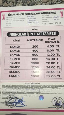 Trabzon’daekmek fiyatlarına beklenen zamyapıldı. Trabzon’da 200 gram ekmek 4 lira, 400 gram ekmek 8 lira, 600 gram ekmek 12 lira, 800 gram ekmek 16 lira, 1 kilo ekmek 20 lira oldu. 1200 gram ekmek 24 TL, 1400 gram ekmek 28 TL ve 1600 gram ekmek ise 32 TL'yi buldu.