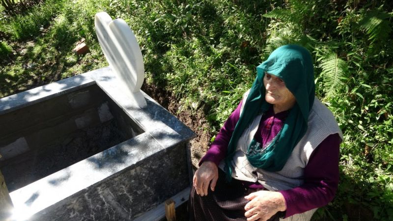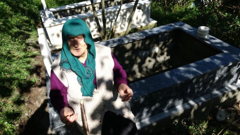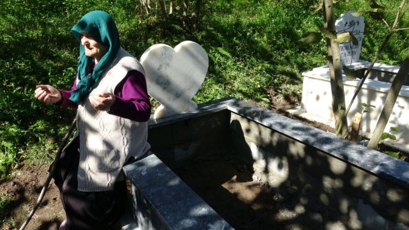Trabzon’un Arsin ilçesindeki Yolüstü mahallesinde yaşayan Menşure Çin (83), yaklaşık 6 ay önce hayatını kaybeden eşinin yanında mezar yaptırmak istedi. Maddi durumu olmadığı için mezarı yaptıramayan yaşlı kadın bu yıl babasından kalan bahçede fındık topladı. Topladığı 200 kilogram fındığı satan Menşure Çin, bu para ile kendine mezar yaptırdı. Evinin üst kısmındaki fındık bahçesinde eşinin yanında yaptırdığı mezarın başında her sabah dua okuyan Menşune Çin, çocuklarının durumu olmadığı için şimdiden kendi bir mezar yaptırdığını söyledi. 6 çocuğu olduğunu belirten Çin, “6 tane çocuğum var. Çocuklarım durumu olmadığı için mezar yaptırmaya karar verdim. Babamdan bana kalan fındık bahçesi vardı. Oradan bu sene 200 kilogram fındık oldu. O fındığın para ile mezarını yaptırdım. Eşimin mezarını da aynı şekilde yaptırdım. Mezarın yanına gelip Kuran ve dualar okuyorum. Cenabı Allah’a 'Eşimin mekanı iyidir beni de oraya layık eyle yarabbim' diyorum. Mezara baktığımda kendimi kabirde görüyorum. Peygamber efendimizin yanında görüyorum” dedi. “Bazen mezara girip yatıyorum”Her sabah kendi mezarının başında dua ettiğini dile getiren Çin, “Bazen mezara girip yatıyorum. Ben oraya gireceğim. Benden iman kuvveti var. Fındıktan aldığım paranın bir miktarınla Afrika’da su kuyusu da açtırdım. Çocuklarım mezarın yapıldığını biliyor. Hepsi bana belki biz erken ölürüz diyorlar. Bu mezarı kendime niyet yaptırdım. Namaz kıldım, Allah’a söz verdim” ifadelerini kullandı. Mezarı yapan mermer ustası Osman Akyasan ise, “Mezar için bir arkadaşımız bizi aradı. Mezar yerinde teyzemiz ile tanıştık. Teyzemiz kendi mezarını yaptırmak istediğini söyledi. Bize ilginç geldi. Teyit için kimin mezarı diye sorduğumuzda kendi mezarım dedi. İnsana tuhaf geliyor. Mezarını yaptık” diye konuştu.