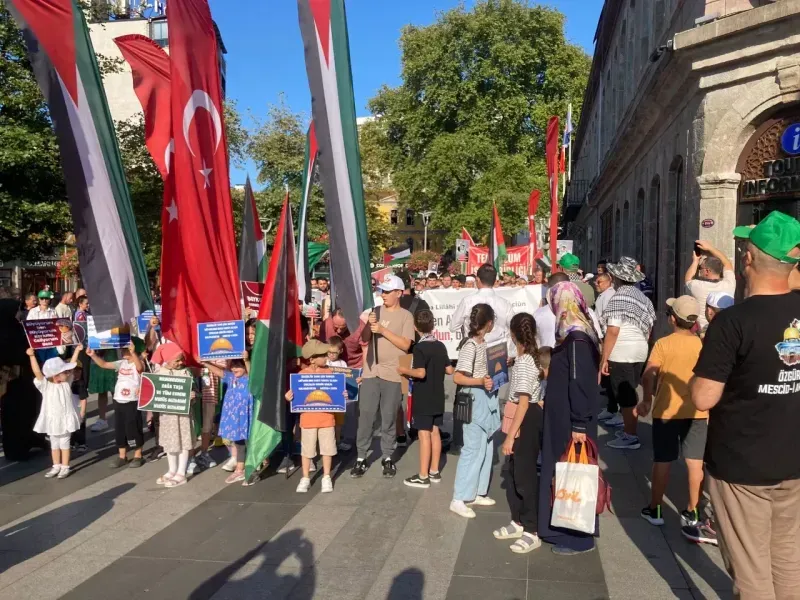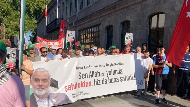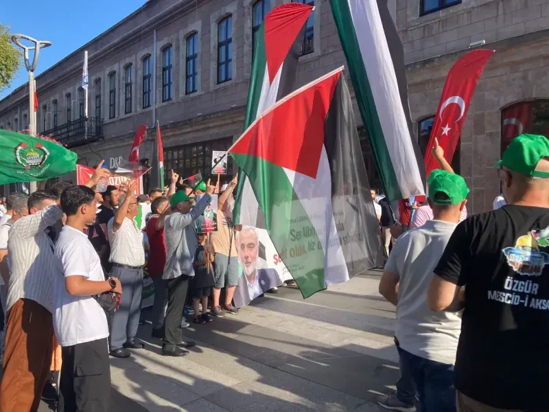 Hamas Siyasi Büro Başkanı İsmail Heniyye'nin İran'da suikasta uğraması ve İsrail'in Gazze'ye yönelik saldırılarını protesto eden grup, Ortahisar'da toplandı. Türk ve Filistin bayrakları taşıyan kalabalık, İskenderpaşa Camisi'nden başlayarak Ziraat Bankası önüne kadar sloganlarla yürüdü.