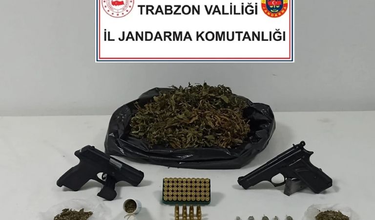 Trabzon İl Jandarma Komutanlığı Kaçakçılıkla Mücadele Şube Müdürlüğünün yapmış olduğu çalışmalar sonucu Trabzon ili, Sürmene ilçesi, Oylum Mahallesinde, H.K. (40-E) isimli şahsın uyuşturucu madde ve silah bulundurduğu ve piyasaya sürmeye çalıştığı tespit edildildiği kaydedildi.Şube Müdürlüğü ve Sürmene İlçe Jandarma Komutanlığı tarafından yapılan arama faaliyetinde;