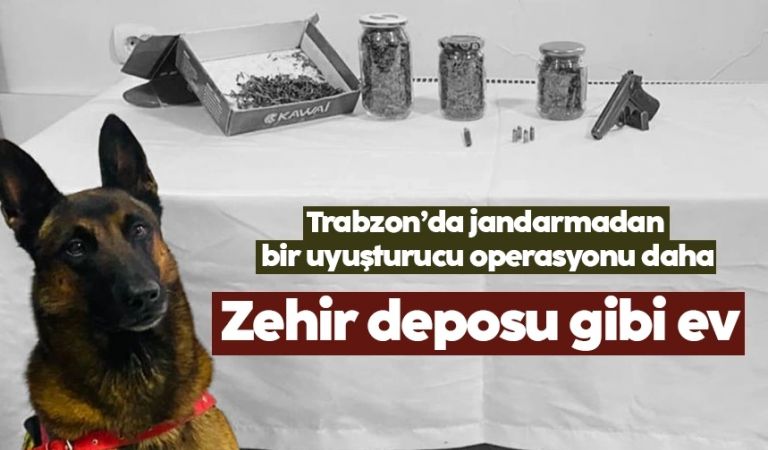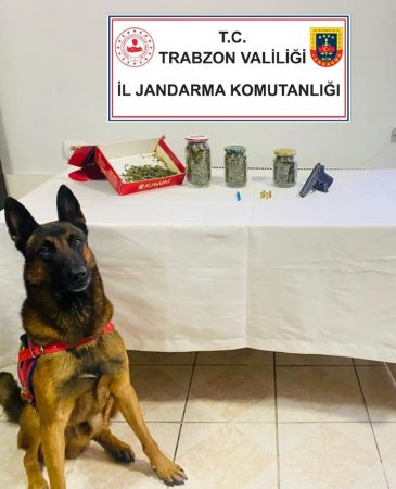 Trabzon İl Jandarma Komutanlığı Narkotik Timlerinin ve Akçaabat İlçe Jandarma Komutanlığı Asayiş Timlerinin yapmış olduğu saha araştırmaları sonucu Akçaabat İlçesi Cevizli Mahallesi’nde D.A.B. (30) isimli şahısın ev ve eklentilerinde uyuşturucu madde bulundurduğu tespit edildi. Jandarma Narkotik Madde Tespit Köpeği "YATKIN"'ın da katıldığı, Akçaabat İlçe Jandarma Komutanlığı Asayiş Timlerinin ve İl Jandarma Komutanlığı Narkotik Timlerinin yaptığı aramada; 1250 gram kubar esrar, 7 adet kenevir tohumu, 1 adet uyuşturucu kullanma aparatı, 1 adet tabanca, 4 adet tabanca fişeği ele geçirildi. Gözaltına alınan şüpheli D.A.B hakkında adli işlemler devam ediyor.