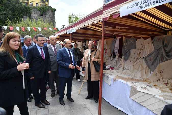 Trabzon kadınının girişimci olduğunu ama kooperatifleşme anlamında eksikliklerin olduğuna vurgu yapan Trabzon Valisi İsmail Ustaoğlu, “Her yıl bu meydan renkleniyor, güzelleşiyor. Tabi ki, renklenen, güzelleşen meydanımızın mimarları da hanımefendiler oluyor. Onlar zerafetiyle, nezaketiyle ve gerçekten hep deriz ya, ‘kadının dokunduğu her yerde bir nezaket zerafet vardır, düzen vardır, nizam intizam vardır.’ İşte bugün burada da Trabzonlu hanımların yapmış olduğu el emeği, göz nuru eserlerinin açılışını gerçekleştireceğiz. Kadınlarımız bazen sevgisini, bazen öfkesini, bazen farklı duygularını katarak, ilmik ilmik, nakış nakış çok güzel eserler üretiyorlar. Diğer yandan bizim kadim kültürümüzde çok ayrı yeri olan sanatları, kültürümüzü ilmik ilmik, adeta nakış nakış işliyorlar. Bu da gerçekten bizim geçmişten geleceğe verebileceğimiz nenelerimizden torunlarımıza diyebileceğimiz birçok kültürel mirasımızın da yaşatılması adına, gelecek nesillere aktarılması adına da ayrı bir anlam ifade ediyor. Trabzon kadını girişimcidir, kültür, sanatta çok görevler ifa etmiştir ama kooperatifleşme noktasında ilimiz maalesef çok zayıftı. Şu an itibarıyla ilimizde bildiğim kadarıyla 8 tane kadın kooperatifimiz faaliyete geçti. Son iki yılda. İnşallah, bundan sonraki süreçte de kooperatifleşerek kolektif bir anlayış içerisinde gayret edeceğiz.” dedi.