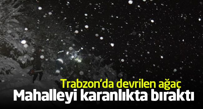 Trabzon’un Şalpazarı ilçesinde bir ağaç, üzerindeki kar ağırlığı nedeniyle devrildi. Devrilen ağacın elektrik tellerine düşmesi sonucu Akçiriş mahallesi karanlıkta kaldı.Mahalle sakinlerinin ifadelerinde göre yıldırım düşmüş gibi bir görüntünün ortaya çıktığı belirtildi.Elektrik dağıtım şirketinin elemanlarının olay yerine gelip müdahalede bulunmasının ardından, mahalleye tekrar elektrik verildiği belirtildi.