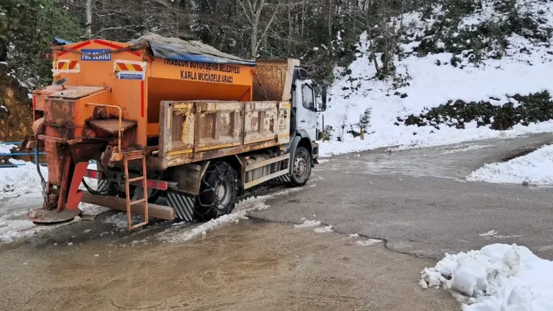Trabzon’un yüksek kesimlerinde yoğun kar yağışı nedeniyle kapanan yollarda yapılan kar temizleme ve tuzlama çalışmaları, ilçe belediyeleriyle koordineli bir şekilde yürütülerek ulaşımın yeniden sağlanmasını sağladı.