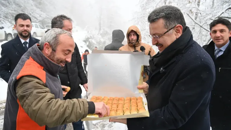 Başkan Genç, karla mücadele ekiplerine moral vermek amacıyla, saha çalışmalarını sürdüren personele tatlı ikramında bulundu ve tüm çalışanlarına kolaylıklar diledi."Trabzon Büyükşehir Belediyesi olarak, hem şehir içindeki tüm yolları hem de özellikle hastane ve okul yollarını açık tutma hedefimiz doğrultusunda çalışmalarımızı sürdüreceğiz. İnşallah bu süreci başarılı bir şekilde tamamlayacağız" dedi.