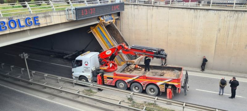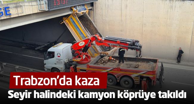 Trabzon’un Ortahisar ilçesinde meydana gelen kazada bir kamyonun damperi köprüye çarparak kamyondan ayrıldı.Seyir halindeki kamyon çarpmanın etkisiyle kamyondan ayrılarak köprüye takıldı.Olay yerine gelen polis ekipleri trafiği tek şeritten verirken kazada yaralanan olmadı.