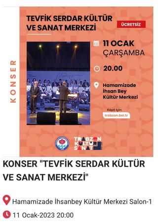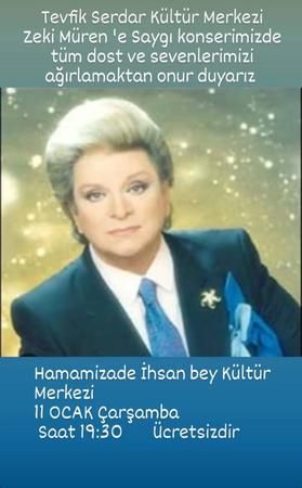 Trabzon'da sanat güneşi Zeki Müren'e saygı konseri düzenlenecek. Tevfik Serdar Kültür ve sanat Merkezi’nin yer alacağı konser Hamamizade İhsan Bey Kültür Merkezinde gerçekleşecek. Zeki Müren'in şarkılarının yer alacağı konser 11 Ocak Çarşamba günü saat 20.00’da gerçekleşecek. Konserin ücretsiz olacağı ifade edildi.