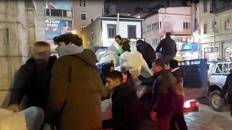 Türkiye genelinde hissedilen Kahramanmaraş merkezli 7.7 büyüklüğündeki depremde en 10 şehir etkilendi. Türkiye'nin ve dünyanın dört bir yanından yardım kolileri deprem bölgesi için hazırlanmaya ve yola çıkmaya başladı. Trabzon'da sabah saatlerinden beri toplanan yardım kolileri kamyonlara doldurulmaya başlandı. Deprem bölgesine gönderilecek ihtiyaç paketleri kamyonlara doldurulmaya başlanarak yola çıkmak için hazır hale geldi.