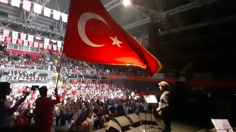 Milliyetçi Hareket Partisi (MHP) Trabzon İl Başkanlığı tarafından düzenlenen “Ülküde Birlik Şöleni”, Beşirli Çok Amaçlı Spor Salonu’nda büyük bir coşkuyla gerçekleşti. Ahmet Şafak ve Mustafa Yıldızdoğan gibi sevilen sanatçıların sahne aldığı etkinliğe vatandaşlar yoğun ilgi gösterdi.Saat 18.00’de başlayan şölen, salonun tamamen dolmasıyla görkemli bir atmosfere büründü. Katılımcılar, sanatçıların seslendirdiği milli ve duygusal şarkılara hep birlikte eşlik ederek adeta tek yürek oldu. Ahmet Şafak ve Mustafa Yıldızdoğan’ın sahne performansları geceye damga vururken, dinleyicilere unutulmaz anlar yaşattı.“Ülküde Birlik” temasıyla düzenlenen program, sadece müzik değil; aynı zamanda milli birlik ve beraberlik duygularının da en yoğun şekilde hissedildiği bir gece oldu. Tribünlerden dalgalanan Türk bayrakları, hep bir ağızdan söylenen marşlar ve paylaşılan coşku, şöleni adeta bir milli birlik şölenine dönüştürdü.