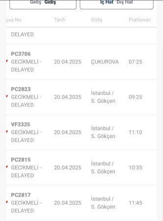 Trabzon Havalimanı kalkış ve varışlı yoğun sis sebebiyle iptal edilen uçakların bilgisine, havayolu şirketleri aracılığıyla ulaşabilir; DHMİ'nin resmi kanallarını takip edebilirsiniz.Trabzon Havalimanı merkezli 20 Nisan 2025 Pazar iptal ve gecikmeye giren seferler şu şekilde: