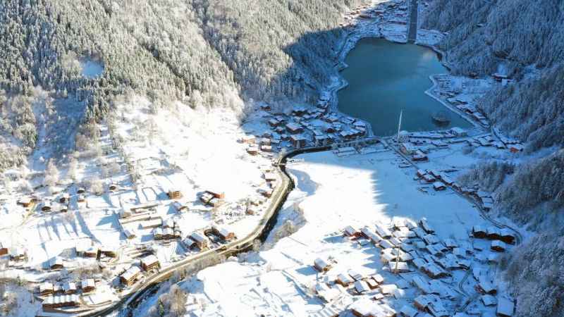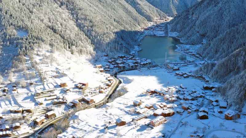 Öte yandan, Uzungöl ve çevresindeki karla kaplı ormanlar dronla görüntülendi.