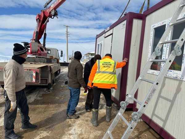 “Trabzon Büyükşehir Belediyesi tarafından barınma ihtiyacına istinaden Kahramanmaraş’ın Elbistan ilçesine 23 konteyner gönderilmiş olup depremzedeler konteynerlere yerleştirilmiştir. Bölgeye ayrıca 3 vinç gönderildi. 2 vinç Kahramanmaraş Merkez’de enkaz çalışmalarında kullanılırken, 1 vinç ile de Kahramanmaraş Elbistan ilçesinde barınma konteynerleri kurulumu sağlandı.”
