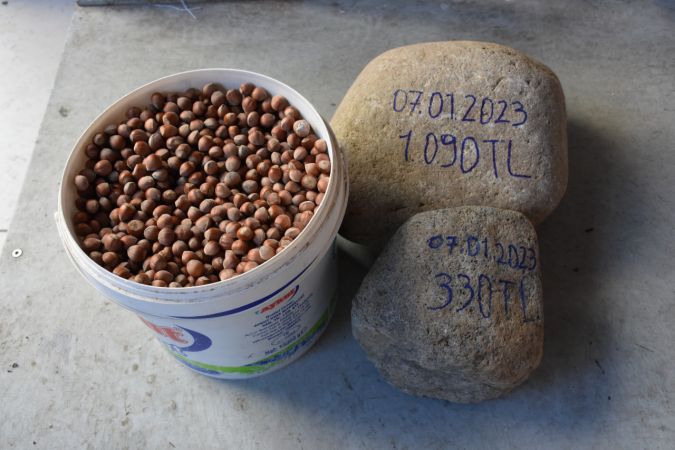 Trabzon'un Sürmene ilçesinde bir tüccara satılan 2 fındık çuvalından 8 ve 20 kilogram ağırlığında iki taş çıktı. İlçenin Çarşı Mahallesi'nde fındık tüccarlığı yapan Akın Aydın, 7 Ocak Cumartesi günü dükkanını 18 yaşındaki yeğeni Cihat Aydın'a emanet etti.İş yerine gelen kimliği belirlenemeyen kişi Aydın'a, içerisinde iki parça taş da bulunan 2 çuval fındık sattı. Bir süre sonra çuvalların içerisindeki taşları fark eden Cihat Aydın, durumu amcasına anlattı.Aydın, 8 ve 20 kilogram ağırlığındaki taşları, üzerlerine günün tarihini ve ağırlıklarının karşılığı fındık ücreti olan 330 ve 1090 lira yazarak iş yerinde sergilemeye başladı.Cihat Aydın, gazetecilere, amcasının yanında bir süredir çalıştığını, cumartesi günü dükkana kendisinin baktığını belirterek, "Yaşlı bir amca geldi, arabasını yolun üzerine park etti, çok acelesinin olduğunu ve annesinin ameliyat olacağını söyledi. Arabasının arkasında bulunan iki çuval fındığı indirdi. Kantarda çuvalları tarttık, parasını ödedim, gitti." dedi.Acemi olduğu için çuvaldaki durumu anlamadığını belirten Aydın, şunları söyledi:"Harmana dökmek için çuvalları kaldırdığımda çok ağır olduğunu anladım. Aklımdan taş olduğu geçti ve çuvalları açtığımda da taşları gördüm. Amcamı aradım, 28 kilogram taş aldığımı söyledim. Amcam çok iyilikle karşıladı. 'Sen daha bu meslekte neler neler göreceksin, kalem al, üzerine tarihi at, fındıkta ne kadar fiyata geldiğini yaz, dükkanımızın önüne koy, bunlar da sana bir tecrübe olsun.' dedi."- "İhtiyaç sahibiyse helali hoş olsun"Fındığı satan kişiden şikayetçi olmayacaklarını ifade eden Aydın, "Eğer gerçekten amcanın ihtiyacı varsa helali hoş olsun, zaten yakın bir süreçte ben dedemi, amcam da babasını kaybetti. Dedemizin ruhuna sayıyoruz. Arayıp bakıp rezil etmek gibi bir amacımız yok." diye konuştu.İlçede 30 yıldır fındık tüccarlığı yapan Akın Aydın da hayırsever bir esnaf olduğunu belirterek, şunları kaydetti:"Bizim yanımıza geleni biz boş çevirmeyiz, vatandaş gelip ihtiyacını söyleseydi helalinden alabilirdi. Ama kendisine parayı yine helal ediyoruz. Ölmüşlerimizin ruhu için. Yalnız tekrarının olmamasını temenni ediyorum. 20 yıl önce de yine böyle bir durumla karşılaşmıştım. Ancak çok yanlış şeyler. Böyle şeylere başvurmadan gelip bizden talep edebilirler. Taşları da yeğenime hatıra bıraktım. Daha dikkatli olur."