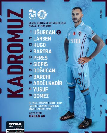 Trabzonspor Yayınlanma: 12 Mart 2023 - 15:01 Güncelleme: 12 Mart 2023 - 21:00 Trabzonspor- Adana Demirspor maçı ilk 11!i açıklandı! Trabzonspor Süper Lig'in 25. haftasında Şenol Güneş Spor Kompleksi'nde Adana Demirspor'u konuk ediyor. A Büyüt A Küçült Yorumlar Trabzonspor Süper Lig'in 25. haftasında Şenol Güneş Spor Kompleksi'nde Adana Demirspor'u konuk ediyor. Saat 16.00'da başlayacak Trabzonspor-Adana Demirspor maçı beIN Sports 1'den naklen yayınlanacak.Trabzonspor- Adana Demirspor ilk 11Trabzonspor: Uğurcan Çakır, Larsen, Vitor Hugo, Bartra, Peres, Siopis, Doğucan, Bardhi, Abdülkadir, Yusuf Yazıcı, Maxi Gomez.Adana Demirspor XI | Ertaç, Svensson, Mert, Semih, Rodrigues, Ndiaye, Stambouli, Yusuf, Akintola, Belhanda, Emre YORUMLAR adlı kullanıcıya cevap x Gönder İlginizi Çekebilir Trabzonspor yeni formasını tanıttı! Eren Bülbül ve Mattia Ahmet Minguzzi unutulmadı! Edin Visca'ya süper lig'den sürpriz talip: Trabzonspor karar aşamasında Trabzonspor 2025-2026 Sezonu formasını tanıttı: Bu özellik dünyada bir ilk Trabzonspor'da borç eriyor Son Haberler Foça'daki o taşlar müzeye taşınacak Diyarbakır’da okul servisinde silahlı saldırı: 2 öğrenci yaralı OSB çalışanlarına yerinde tanıtım! Karadeniz’den gelen lezzet mucizesi: Bir kaşık alınca vazgeçemeyeceksiniz!... Gök gürültüsüyle geliyor: Meteoroloji resmen duyurdu! Sağanak kuzeyi,... Ego 5. Bölüm Fragman Ego 5. Bölüm Fragman
