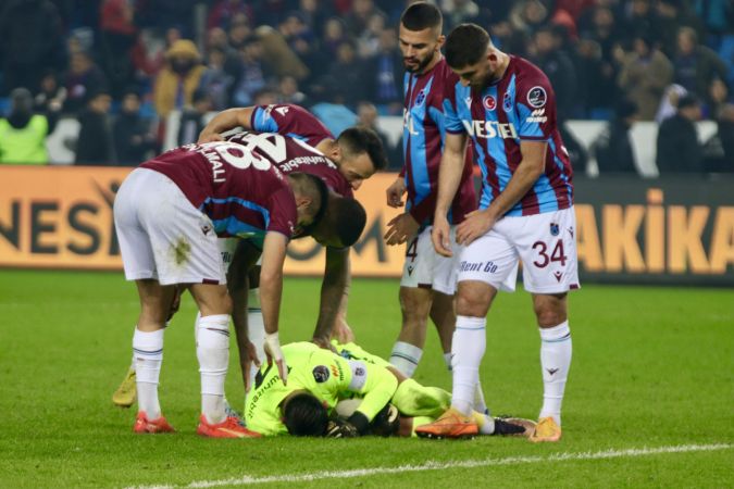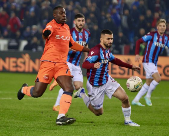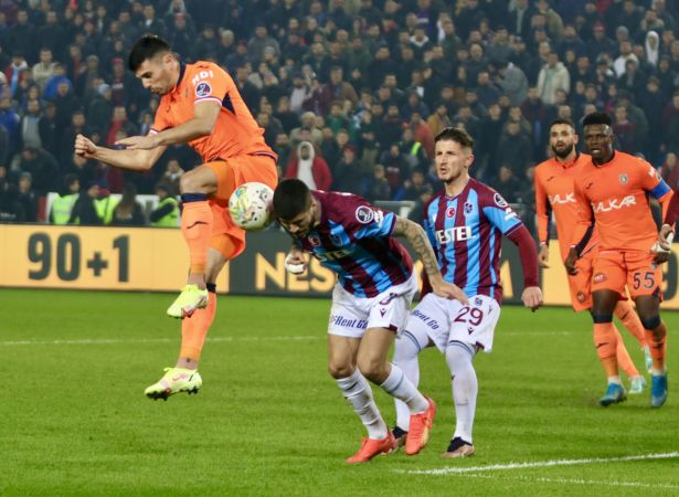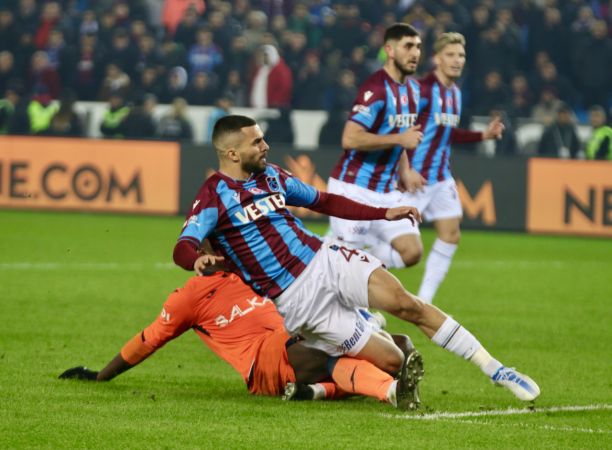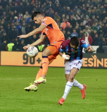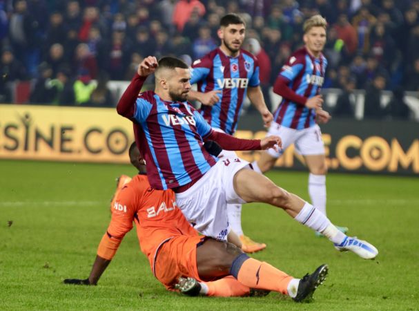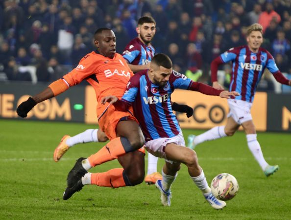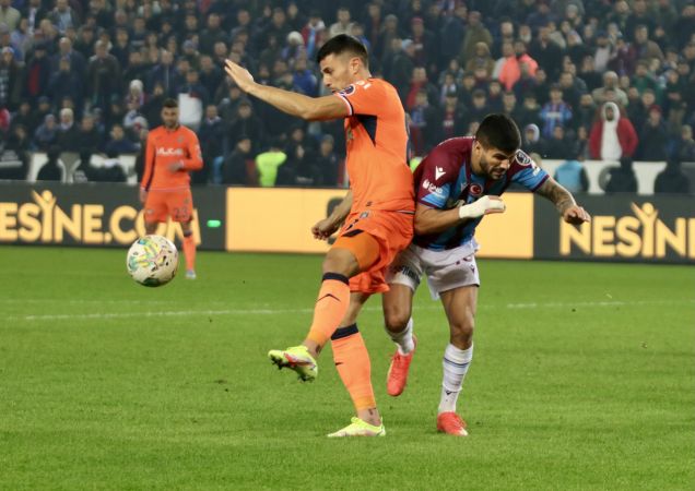 Spor Toto Süper Lig’in 19. haftasında Trabzonspor ile Başakşehir, Şenol Güneş Spor Kompleksi’nde karşılaştı. Bir pozisyonda, Trabzonsporlu futbolcu Eren Elmalı (sol 2) rakibi ile mücadele etti.