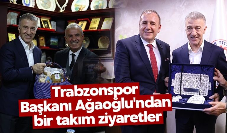 Trabzonspor Başkanı Ahmet Ağaoğlu, beraberinde Genel Sekreter Ömer Sağıroğlu, Başkan Yardımcısı Zeyyat Kafkas ve Yönetim Kurulu Üyelerisi Sami Karaman, Lokman Sadıklar ve Coşkun Öztürk ile birlikte Trabzon Ticaret ve Sanayi Odası ile Trabzon Ticaret Borsası'nı ziyaret etti.Trabzon Ticaret ve Sanayi Odası'nı ziyarette Meclis Başkan Yardımcısı Hülya Ulusoy ile Yönetim Kurulu Başkanı Erkut Çelebi ve yönetim kurulu üyeleri yer aldı.Trabzon Ticaret Borsası'nı ziyarette ise Yönetim Kurulu Başkanı Eyyüp Ergan ile başkan yardımcıları Yavuz Selim Çakıroğlu ve Mikbir Hakan Canbakkal yer aldılar.Ziyaretlerde Başkan Ahmet Ağaoğlu'na TTSO'de kahve takımı, TTB'de ise fındık mamullerinin yer aldığı sepet hediye edildi.