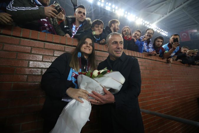 Spor Toto Süper Lig’in 19. haftasında Trabzonspor ile Medipol Başakşehir, Şenol Güneş Spor Kompleksi’nde karşılaştı. Trabzonspor teknik direktörü Abdullah Avcı'ya (solda) taraftarlar çiçek verdi.