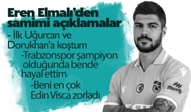 Trabzonspor'un başarılı savunma oyuncusu Eren Elmalı, kulüp dergisine konuştu. Trabzonspor'a transferi ve birçok önemli soruyu cevaplayan Elmalı samimi açıklamalarda bulundu. 22 yaşındaki sol bek bu sezon Süper Lig'de 12 maçta forma giyerken 1 asist ile takımına katkı sağladı.İşte Elmalı'nın röportajı:Trabzonspor’dan sana teklif geldiğinde ne hissetin, transfer sürecin nasıl gelişti?Trabzonspor’un teklifi milli takım sürecinde gerçekleşmişti. Ben milli takımdayken bir teklif vardı. Milli takımın son maçında da kesinleşmişti Trabzonspor’a transferim hatta Milli Takım son maçından sonra bunu da zaten Dorukhan abiyle ve Uğurcan abiyle paylaşmıştım. Onlar da çok mutlu olmuştu. Tabii ilk teklif geldiğinde kendimi çok değerli hissetim. Çok mutlu oldum. Çünkü ligimizin son şampiyonu ve çok büyük bir camiaydı Trabzonspor. Müthiş bir kadrosu vardı. Teknik ekibi çok iyiydi, oyuncuları çok iyiydi. Oyuncularından zaten birkaç tanesini senelerdir tanıyordum. Trabzonspor’un teklifini düşünmeden kabul ettim ve burada olduğum için de çok mutluyum.Takımımızın şampiyonluk kutlamaları tüm Dünya’da ses getirdi. Takip edebildin mi, neler söylemek istersin?Tabii ki izledim. Gerçekten söylüyorum, belki de böyle bir şampiyonluk kutlaması yoktur. İnanılmaz hoşuma gitmişti. Hatta buraya gelince de şöyle bir şey düşündüm içimden; inşallah bu sene yine şampiyon oluruz ve bu şampiyonluklarda ben de olurum. İşte kendi müziğimle taraftarın karşısına çıkmayı hayal ettim. Gerçekten çok değerli bir şampiyonluktu. İnşallah bu sene tekrardan nasip olur. Biz de bu güzel taraftarımız önünde istediğimiz şarkılarla önlerine çıkarız.Trabzonspor ile ilk maça çıktığında neler hissetin? İlk maçında kupa coşkusu da yaşadın, duygularını bizlere anlatır mısın?İlk resmi maçım Süper Kupa Maçıydı… Çok güzel duygulardı. Taraftarlarımız maça çok büyük ilgi göstermişti, 40-50 bin kişi vardı sanırım. Olimpiyat Stadyumu’nda maçtan önce sahaya çıktığımda sadece böyle tribünleri izledim. Hani rakip olarak oynamak farklı evet hissediyorsunuz taraftarı ama şimdi o takımın oyuncusu olarak sahaya çıkmak çok daha farklı. Dediğim gibi ilk çıktığım zaman böyle baya seyretmiştim taraftarlarımızı ve çok hoşuma gitmişti bizi desteklemeleri. İlk maçımızda da zaten kupa kazandık ve sezona kupayla başladık. İlk maçımda kupa almak çok güzel ve çok özel duyguydu benim için. Böyle de devam edeceğini umuyorum. Başarılarla dolu maçlar ve kupalı sezonlarla inşallah böyle devam eder.Kariyerin boyunca seni en fazla zorlayan oyuncu kimdi?Bunu yakın bir zamanda Edin abiyle de konuşmuştuk. Ben Edin Visca demiştim. Gerçekten çok çok akıllı bir futbolcu. Böyle 3-4 saniye sonrasını düşünen bir futbolcu. Hatta birkaç örnek vermiştim. Biz Kasımpaşa-Başakşehir maçında karşılıklı oynarken böyle arkama bakmıştım Edin abi yoktu. 5-10 saniye sonra top kaleciden döndü. Bir baktım Edin abi gol atmış. Bu durumu onunla da konuştuk ve Edin abi bana; Bosna’da bir hocası ona söylemiş, 4-5 saniye sonrasını hayal et diye. Ben de onu yapıyorum dedi. Benim için kötü olmuştu ama onun için atak gol ile sonuçlanmıştı. Ben, Edin Visca diyeceğim gerçekten çok çok akıllı bir futbolcu. Çok zor yani böyle oyuncuları durdurmak.