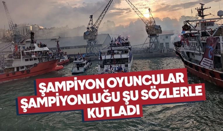Süper Lig şampiyonu Trabzonspor, taraftarlarıyla birlikte Karadeniz'i bordo-maviye boyadı. Trabzonspor'u taşıyan tekne Faroz Limanı'nda taraftarları selamladıktan sonra Trabzon Limanı'na dönerek buradan üstü açık otobüs ile kupa töreninin yapılacağı Medical Park Stadı'na geçiyorFırtına'nın şampiyon futbolcuları teknede şu açıklamalarda bulundu:Uğurcan Çakır: Böyle bir şey var mı ? Kimse böyle bir şey kutlayamaz.Yusuf Erdoğan: İyi ki Trabzonsporluyuz. Çok müthiş bir duygu. Sanki savaşa gidiyoruz. Hayatımız boyunca unutamayacağımız bir atmosfer var. Trabzonspor taraftarı en iyisini hak ediyor. En büyük biziz. Şampiyon biziz.Berat Özdemir: Taraftarımızla birlikte kupa kaldıracağımız günü iple çekiyorduk. Çok güzel başladık. Gecenin son saatine kadar eğleneceğiz.Edgar IE: İnanılmaz bir görüntü var, inanılmaz mutluyum. Ben sakatlandım ama arkadaşlarım bu büyük işi devam ettirmeye çalıştı. Taraftarlarımızı mutlu etmek harika bir duygu.Gervinho: Herkesle birlikte olduğum için çok mutluyum. En önemlisi şampiyon olmamızdı. Kendi adıma ve tüm takım adına çok mutluyum.Dorukhan Toköz: Çok mutluyuz. Horonu pek bilmiyorum ama bilen arkadaşlardan bir şeyler kapmaya çalışıyoruz.Abdülkadir Ömür: Yıllardır bu anı bekliyoruz! Sabaha kadar eğlenmek istiyoruz.Anastasios Bakasetas: Çok eğleniyorum, ortam mükemmel. İnanılmaz bir atmosfer var.İsmail Köybaşı: Real Madrid şampiyon olsa bence bunu yaşayamaz. Harika bir atmosfer. Herkesin gözleri pırıl pırıl. Bunu parayla satın alamazsınız. Biz çok güzel bir aileyiz.Ahmetcan Kaplan: Trabzonspor'un altyapısında yetiştim, bu hisler benim için çok özel. Galatasaray maçı kırılma anıydı, geriden gelip kazandık. Deplasmandaki Fenerbahçe maçında 3 puanı kaçırdığımız için üzgündük ama 1 puan aldık. Herkes elinden gelenin en iyisi yaptı.