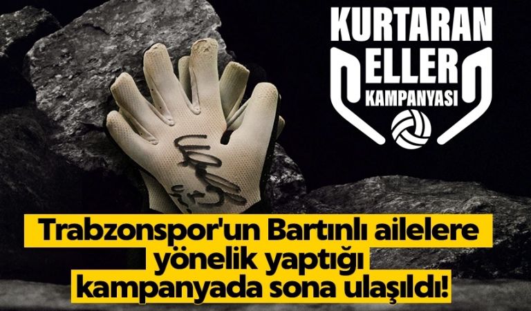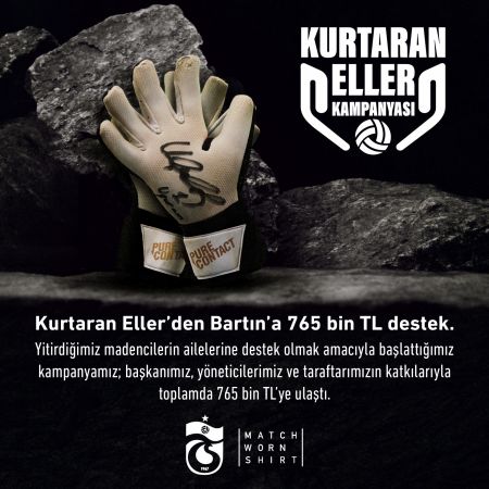 Bartın'da geçtiğimiz ay yaşanan maden faciasında 41 işçi hayatını kaybetmişti. Maden şehitlerinin geride kalan aileler için Trabzonspor'da bir kampanya başlatmıştı. Bordo Mavili ekibin kaptanı Uğurcan Çakır Beşiktaş maçında kullandığı eldivenleri imzalayarak açık arttırmaya çıkarttığını duyurmuştu.Kurtaran Eller kampanyasında toplamda 765 bin TL'ye ulaşıldığı açıklandı.Trabzonspor'dan konuyla ilgili şu açıklama yapıldı: