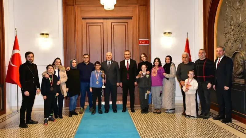 Vali Yıldırım, kabulde 12 yaş genel kategorisinde Türkiye Şampiyonu olan Murat Kutay Göktürk’ü tebrik ederken, aynı başarıyı gösteren diğer sporcular Eymen İsa Köseoğlu, Melike Eliz Karahan, Beren Baki ve Zeynep Erva Özen ile de sohbet etti. Genç sporcular, Türkiye Şampiyonası’nda elde ettikleri derece ile büyük bir başarıya imza atarak, milli takım havuzuna girmeye hak kazandılar.
