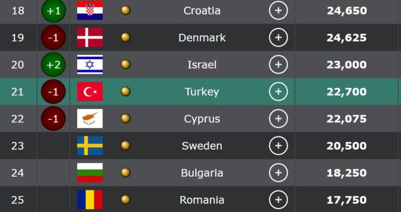Fenerbahçe'den sonra Trabzonspor'un elenmesi sonucunda 1996/97 yılından bu yana UEFAŞampiyonlar Ligi gruplarında mücadele eden en az 1 Türk takımının kupaya katılma serisi sona erdi.Son zamanlarda Avrupa Kupaları'nda temsilcilerimizin aldığı kötü sonuçlar Türkiye'nin UEFA ülke sıralaması listesinde gerilemesine neden oldu. 2019/20 sezonunda 11. sırada yer alan Türkiye, şimdi de 21. sıraya geriledi. Konyaspor'un Avrupa'ya erken vedalaşmasının ardından kupalarda mücadele eden 4 temsilcimiz vardı, Türkiye ise İsrail'e taşınarak şok oldu.İşte ülke puanı sıralamasındaki en son bilgiler: