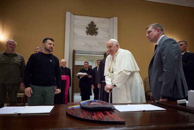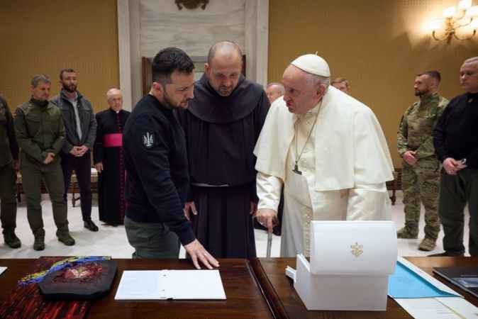 Rusya ve Ukrayna arasındaki savaş devam ederken Ukrayna Devlet Başkanı Zelenskiy’nin diplomatik çözüm arayışı devam ediyor. Ukrayna Devlet Başkanı Zelenskiy, Rusya-Ukrayna savaşından bu yana resmi temaslarda bulunmak üzere ilk kez İtalya’yı ziyaret etti. Yoğun güvenlik önlemleri altında binden fazla kolluk kuvvet eşliğinde cumhurbaşkanlığı sarayı Quirinale’de resmi törenle karşılanan Zelenskiy, ilk olarak İtalya Cumhurbaşkanı Sergio Mattarella ile görüştü. Görüşmede İtalya Cumhurbaşkanı Mattarella, “Sizi burada ağırlamak benim için onur. İtalya kısa ve uzun vadede askeri, ekonomik, insani yardım ve Ukrayna’nın yeniden inşası konusunda Ukrayna’nın yanındadır” dedi.Zelenskiy, Cumhurbaşkanı Mattarella ile görüşmesinin ardından İtalya Başbakanı Giorgia Meloni ile bir araya geldi. Rusya’nın saldırılarını "acımasız ve haksız” olarak değerlendiren Meloni, "Ukrayna’ya desteğimiz tam ve Rusya’yı derhal geri çekilmeye çağırıyoruz” ifadelerini kullandı. Başbakan Meloni konuşmasında ayrıca İtalya’nın Ukrayna’nın Avrupa Birliği üyeliğine verdiği desteğini belirtirken, Ukrayna’nın NATO ile ortaklığının yoğunlaştırılması gerektiğini vurguladı. İtalya Başbakanı Meloni ile basın toplantısında konuşan Zelenskiy de, "Tüm İtalyan siyasi liderlerini ve sivil toplum temsilcilerini Ukrayna’yı ziyaret etmeye davet ediyorum, tek bir kişinin bize neler yapabileceğini, Putin’in neler yapabileceğini görebileceklerini ve bu kötülükle neden savaştığımızı anlayacaksınız" cümlelerini kullandı."Vatikan arabuluculuk yapmak için hazır"İtalyan liderlerle görüşmesinden sonra Katoliklerin ruhani lideri Papa Francis ile buluşmak için Vatikan’a doğru yola çıkan Zelenskiy’nin bu görüşmesinde de Rusya ve Ukrayna arasındaki savaş konuşuldu. Vatikan’ın Rusya ve Ukrayna arasındaki savaşta arabuluculuk yapmak için hazır olduğunu söyleyen Papa Francis, "Vatikan savaşı sona erdirmek için bir barış planı üzerinde çalışıyor görevin henüz kamuoyuna açıklamadık ancak açıklandığında bunun hakkında konuşacağım" dedi.Papa Francis ile yaptığı görüşme ile ilgili Twitter’da açıklamada bulunan Zelenskiy, "Papa Francis’in milyonlarca Ukraynalının yaşadığı trajediye kişisel ilgisi için minnettarım. Ülkeden çıkmak zorunda olan on binlerce çocuktan bahsettim. Onları eve döndürmek için her türlü çabayı göstermeliyiz. Ayrıca Ukrayna’daki suçları kınamak istedim. Çünkü mağdur ile saldırgan arasında eşitlik olamaz. Adil bir barışa ulaşmak için tek etkili algoritma olan ’Barış Formülümüzden’ bahsederek ona bu uygulamaya katılmayı teklif ettim" dedi.Zelenskiy, Papa Francis ile en son 2020’de Vatikan’da bir araya gelmiş ve ikili, Rusya ve Ukrayna savaşının başlangıcından bugüne kadar birkaç telefon görüşmesi yapmıştı.