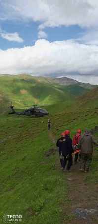 Tunceli merkeze bağlı Gözen köyü Mergeçekar Yaylası’nda çobanlık yapan Emin Koyuunan’ın kalp krizi geçirdiğinin bildirilmesi üzerine bölgeye askeri helikopter ve UMKE personeli sevk edildi. Yaylada ilk müdahalesi yapılan şahıs, askeri helikopterle Tunceli Devlet Hastanesi’ne kaldırılarak tedavi altına alındı.