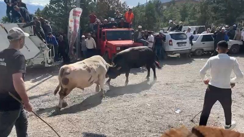 Artvin’in Yusufeli ilçesinde düzenlenen geleneksel Derekapı Boğa Güreşleri, heyecan dolu anların yaşanmasına sahne oldu. Ancak güreşin ortasında, iki boğanın arena dışına taşıp seyircilerin arasına dalmasıyla korku dolu anlar yaşandı. Boğaların sahipleri tarafından güçlükle sakinleştirilmesi sonrasında, panikleyen izleyiciler zor anlar yaşadı.Derekapı Boğa Güreşleri’nde karşı karşıya gelen iki boğa, oldukça sert bir mücadeleye girişti. Ancak güreş sırasında boğalar, bir anda arenanın kapısını kırarak dışarıya fırladı. Panik içinde seyircilerin arasına dalan boğalar, büyük bir kaosa neden oldu. Bu sırada izleyiciler hızla alanı terk etmeye çalışırken, çevredeki vatandaşlar olay anını cep telefonlarıyla kaydetti.Sahipleri, boğaları sakinleştirmek için büyük çaba harcadı. Güçlükle kontrol altına alınan boğalar, güvenli bir alana götürülerek olayın büyümesi engellendi. Neyse ki, şans eseri hiçbir izleyiciye zarar gelmedi. Olayın ardından boğalar güvenli bir şekilde alandan çıkarılarak güreşlere yeniden başlandı.Güreşlerin devam etmesiyle birlikte izleyiciler, kısa süreli korku ve panik sonrası yeniden keyifli anlar yaşadılar. Olay, Yusufeli’deki boğa güreşlerinin ne kadar heyecanlı ve bazen tehlikeli olabileceğini bir kez daha gözler önüne serdi. Yetkililer, benzer olayların yaşanmaması için önlemlerin artırılacağını açıkladı.